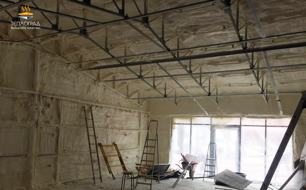 Утепление стен и потолка ангара. Общая площадь 871 м2