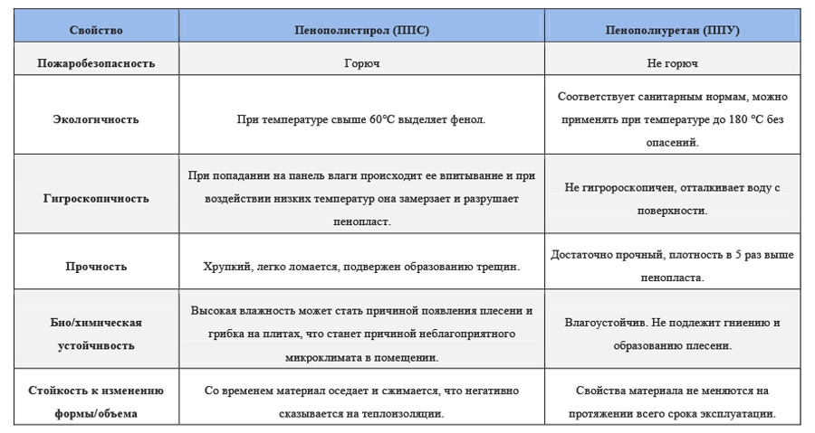 Сравнение пенополиуретана или пенополистирола